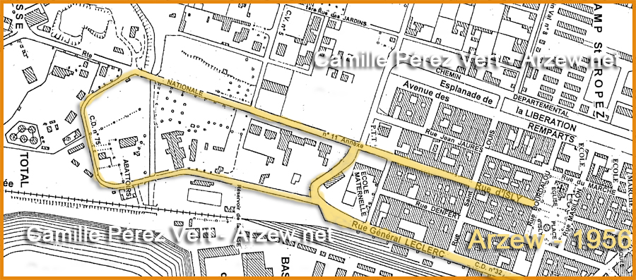 Et bien la maison de mes parents était construite en face de cet immeuble, de l'autre côté du tronçon de route,le long d'une ruelle ( qui n'est pas indiquée sur le plan) rejoignant la national n°11 annexe et la rue des Abattoirs.
